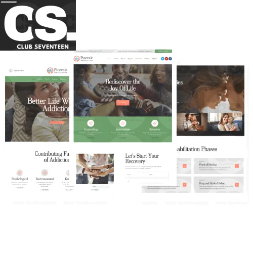 **Find Pinevale at Club Seventeen:** Contact Club Seventeen to learn more about purchasing and implementing this theme to enhance your center’s online presence and reach more people seeking recovery.
